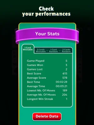 For those who like to keep track of their performance, the app also offers personal stats. Players can see their statistics for each game type, such as 1 or 3 cards winnable and 1 or 3 cards random. They can also view how many games they have played, won, lost, and their average time. With its classic gameplay, customizable features, and personal stats, Solitaire by Loop is sure to provide hours of entertainment for players of all levels.