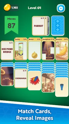 The objective of the game is to match cards in a solitaire-style format in order to uncover jigsaw image fragments. As players progress through the game, they will complete full scenes and unlock new themed collections. With over 70 handcrafted levels, the game offers a smooth difficulty curve that starts off simple and gradually becomes more challenging.