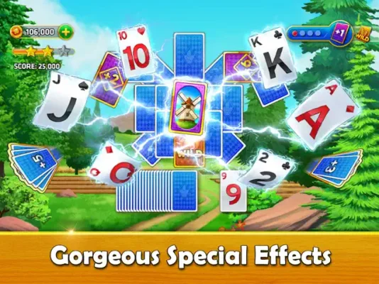 Another unique aspect of Farm Journey TriPeaks Solitaire is its level design. With four different modes and hundreds of levels (with more coming soon), there is always something new for you to discover. And with the streak meter, you can win even more rewards by collecting multiple cards on the table without turning the hand card. Complete the streak with cards of the same color or suit to double or triple your reward!