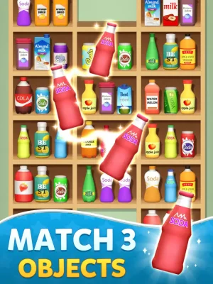 The Sort Match application is a fun and challenging sorting game that allows you to test your brain and kill time with joy. The goal of the game is to find and gather three identical goods from a variety of items, including fresh crops and essential household items. As you efficiently organize the shelves, clear them, and accomplish tasks within a given time, you can unlock more of your favorite products by completing levels. With over 1000 levels and lots of styles to discover, such as toys and desserts, there is always something new to explore in Sort Match.