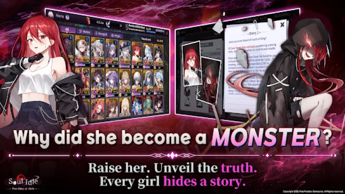 Experience the twisted charm of the girls under the moonlight as they transform into mesmerizing yet creepy creatures. Upgrade them with hundreds of different gears and witness their innocent yet deadly power. Take on endless stages, thrilling dungeons, and intense World Boss fights with these charming yet dangerous girls. And as they awaken, their true power will be unleashed, enhancing their skills and stats.