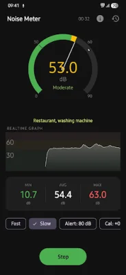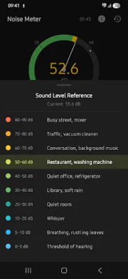Real-Time Measurement is an application that allows you to monitor the decibel levels in your surroundings in real-time. It features a visually appealing arc gauge with a smooth needle and peak hold indicator, making it easy to read and understand the current noise levels. Additionally, the scrolling dB graph provides a quick overview of how the sound levels have changed over time. The app also offers the ability to track the minimum, average, and maximum decibel values for each session automatically. This feature is useful for keeping a record of noise levels and identifying any patterns or trends. One of the standout features of Real-Time Measurement is the Threshold Alert. Users can set a custom dB threshold, and when the noise exceeds this limit, they will receive an instant vibration and sound alert. This feature is particularly useful for monitoring noisy environments and ensuring that noise levels stay within a safe range. The app also allows for calibration and response speed adjustments. Users can fine-tune their measurements with a ±20 dB calibration offset and switch between fast and slow response modes to suit their specific needs. All measurements are saved automatically, and users can review past sessions at any time. The measurement history includes the date, duration, and min/avg/max values, providing a comprehensive overview of noise levels over time. For those unfamiliar with decibel values, Real-Time Measurement offers a built-in reference chart that shows what everyday sounds correspond to different dB levels. The current reading is highlighted in real-time, making it easy to understand the noise levels in your environment. The app also offers a choice between dark and light themes, both of which are optimized for comfortable use indoors and outdoors. And with the background measurement feature, users can continue to monitor noise levels even when the app is in the background, thanks to a persistent notification that displays the current dB level. Whether you're a sound engineer, workplace safety officer, or simply curious about the noise levels in your surroundings, Real-Time Measurement provides the data you need to make informed decisions. With its user-friendly interface and useful features, this app is a must-have for anyone looking to monitor and track noise levels.