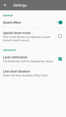 The main features of this app include an upside down mode, level notification, line-chart duration, and a sleek material design. The pro version offers additional features such as no ads, a vibrometer, a statistic menu, and the ability to export data as a CSV file.