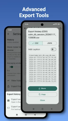Calm dB also offers calibration tools to improve the accuracy of the measurements. This is especially useful for those who need precise readings for their work or research. The app also allows you to export the data to CSV or JSON format for further analysis. And if you need to keep the screen on during long measurements, there is an option for that as well.