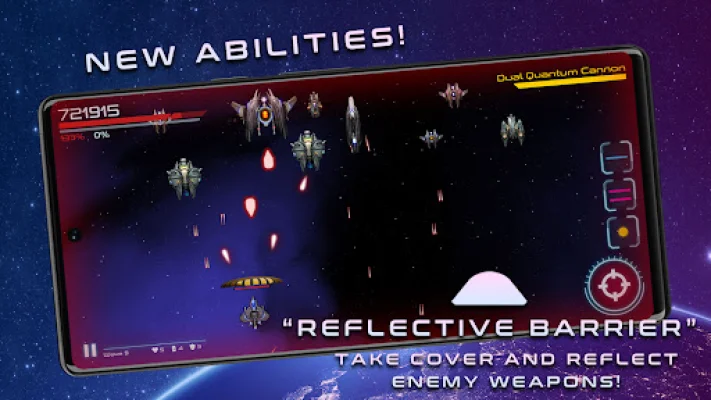 In addition to the different space crafts, players can also switch between different weapon types to better suit their play style. The game also features boss levels that become increasingly difficult each time they are encountered. To aid in the battle against the enemy, players can collect power-ups for shields, weapons, and health.