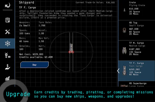 The game offers players a variety of options to choose from. They can trade commodities to earn credits, upgrade their ships, and engage in real-time space combat. Each planet sells commodities at different prices, so players must figure out the best trade routes to maximize their profits. They can also choose their preferred ship style - cargo ship, warship, slow and sturdy, or quick and agile. With so many options, players must strategize and make decisions on how to best use their resources.