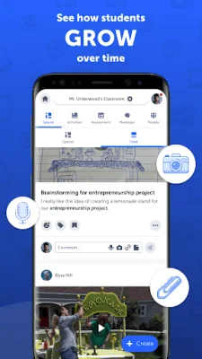 SpacesEDU is an educational application that facilitates a two-way conversation between students and teachers. It allows students to ask questions, receive feedback from teachers, engage in peer reviews, and share their work in an authentic and flexible manner, all within the app itself. This eliminates the need for students to switch between different platforms or apps, making the learning process more seamless and efficient. One of the key features of SpacesEDU is the ability for teachers to provide real-time feedback on student work through commenting and messaging, without having to leave the app. This allows for a more efficient and effective communication between teachers and students, promoting a better understanding of the learning material. SpacesEDU also offers a variety of spaces for different purposes. Teachers can create activities, 1:1 spaces for individual student-teacher interactions, and group spaces for collaborative projects and peer reviews. These spaces provide a safe and organized environment for students to engage in their learning process and showcase their work. The app also supports a wide range of media types, allowing students to upload files, capture content from their camera or microphone, add links from websites, or import from Google Drive and Microsoft OneDrive. This promotes creativity and allows for a more diverse range of learning materials. For schools and districts, SpacesEDU offers additional features such as reporting spaces, proficiency scales, and family accounts. These features allow for a more comprehensive assessment and reporting of student progress, as well as involving families in the learning process. SpacesEDU also prioritizes student privacy, complying with FERPA, COPPA, and PIPEDA standards. It also offers technical support for both teachers and students, ensuring a smooth and hassle-free experience for all users. In addition, the app offers advanced settings and notifications, including options for private or collaboration-focused workspaces. It also integrates with Clever SSO, making it easier for users to sign up and log in. Overall, SpacesEDU is a comprehensive and user-friendly educational app that aims to enhance the learning experience for both students and teachers. With its various features and focus on privacy and support, it is a valuable tool for any classroom.