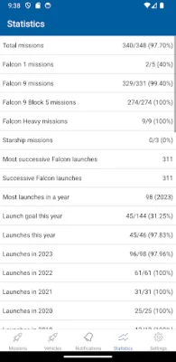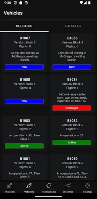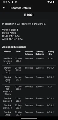 The detailed booster and capsule section provides users with additional information about these vehicles, which can be interesting for those who want to learn more about SpaceX's technology and engineering. The stats section is also a valuable feature, as it offers various statistics and information about SpaceX, such as the number of successful launches and the company's revenue.