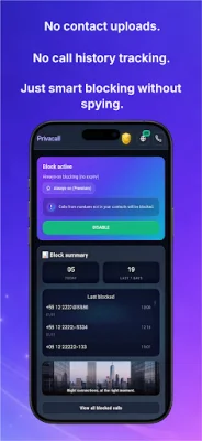 Privacall is designed to be simple and fast, making it accessible for everyone. With its automatic blocking feature, you won't have to worry about complicated setups. Simply activate the app with one tap and let it do the rest.