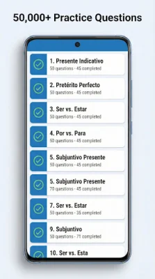 Our app is the perfect tool for anyone looking to learn Spanish, whether you are a beginner or preparing for the DELE exam. With over 10,000 interactive exercises, our comprehensive practice database is the most extensive on the Play Store. And the best part? It's completely free! Say goodbye to expensive courses and start your Spanish language journey with us.