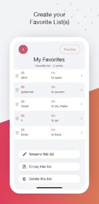 One of the unique features of this app is the ability to create favorite lists. Users can save their favorite verbs and use the flashcard feature to learn and review them. This makes it easier for users to focus on specific verbs they want to master.