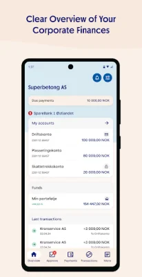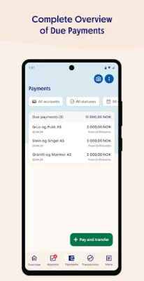 This application allows you to easily manage your finances on the go. With this app, you can transfer funds between your own accounts, pay bills using the invoice scanner, and get a complete overview of your finances. It also notifies you about new payments that require your approval.