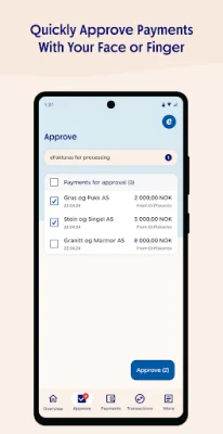 The app also sends notifications about new payments that require your approval. This ensures that you are always aware of any activity on your account and can quickly approve or reject payments. With the convenience and security features of this app, managing your finances has never been easier.