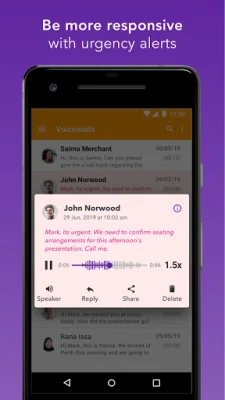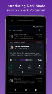 One of the key features of the Spark Voicemail app is the ability to access voicemails in any order. Users can easily scroll and tap to view voicemails in threads, organized by contact. The app also offers playback speed control, allowing users to save time or listen carefully with 0.8x, 1x, 1.5x, or 2x speed options.