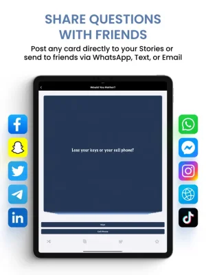 The app offers a limited number of free questions, but users can unlock the full version through a one-time purchase or an affordable subscription. With either option, users can save their favorite questions and play in full-app shuffle mode. The app can be used with friends, dates and partners, family, or even for personal reflection.