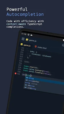 Users can preview HTML and Markdown files on their device, as well as search for projects and files within the app. The app also offers code syntax analysis and a smart auto-completer, making coding more efficient. There is also a code completion and context provider, as well as auto code-indentation. Users can choose between light and dark themes for their coding environment.