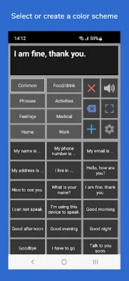 The app offers a variety of key features, including the ability to customize it to fit individual needs and preferences. Users can organize their phrases into categories for quick access and can also access a history of previously typed phrases. The app also allows users to select photos or symbols to be displayed on the buttons, as well as record their own speech or use a text-to-speech voice. A full screen button is available for displaying messages with a larger font, and an auto-complete feature makes it easy to find phrases quickly. The app is designed for both smartphones and tablets, with options for portrait and landscape layouts. Users can also backup their data to Mail or Google Drive.
