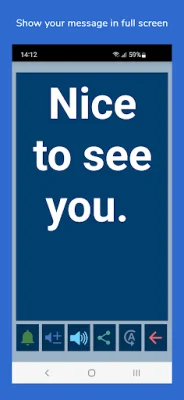 The full screen feature allows users to display their message with a large font, making it useful for communicating in noisy environments. There is also a button for rotating the text to show the message to someone sitting across from the user.
