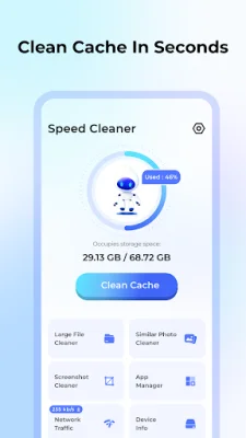 The cache cleaner scans and removes junk files, system caches, and residual files from the device. This helps to free up storage space and improve the device's performance. It also identifies and removes duplicate photos and files, which can also take up unnecessary space on the device.