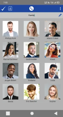 In the Speed Dial app, you can manage your contacts by easily adding or removing them. To edit a contact, simply tap the edit icon and select the contact you want to modify. From there, you can change the contact's image, name, phone number, email, and color.