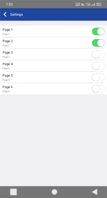The "Page" option allows you to arrange and enable pages within the app. You can rearrange the pages by holding down on a page and dragging it to a different position. You can also enable or disable pages, with a total of six pages available. Additionally, you can choose a background for your pages, including options for blur, blank tint, and removing the background altogether.