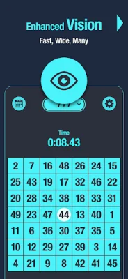 Are you looking to enhance your brain's processing speed through brain training that expands your peripheral vision? This app offers a free and simple way to improve your peripheral vision using the "Schulte table" technique. This technique is featured in the popular book "Spy School: Are You Sharp Enough to Be a KGB Agent?" and is used by intelligence agents to improve their memory and concentration. By focusing on the center of the table and using only your peripheral vision, you can train your attention, concentration, and self-control, all of which are essential for memory improvement.