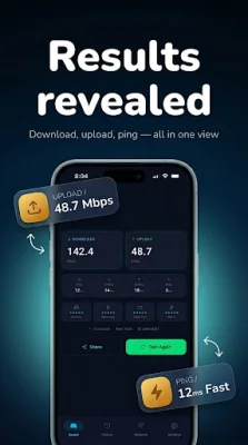 This application is designed to help users accurately measure their internet speed and connection quality. It provides real numbers, not estimates, for download speed, upload speed, ping, and latency. With just one tap, users can see their true connection speed on a live speedometer gauge, whether they are on WiFi, 4G LTE, or 5G networks.