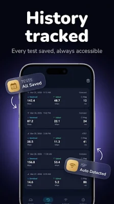Another useful feature of the app is the speed test history, which automatically saves every speed test result. This allows users to review their connection history, compare speeds across sessions, and track performance trends over time. It can also help identify recurring slow internet problems and verify if their internet service provider is delivering the speeds they are paying for.