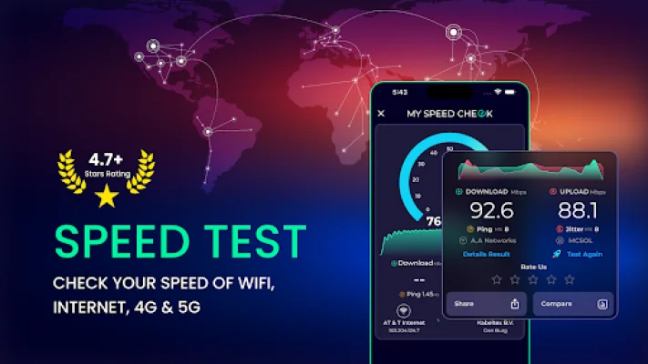 MySpeedCheck is an application that allows users to test the speed of their Wi-Fi or mobile data. With just one tap, users can measure their download speed, upload speed, ping, latency, and signal strength. This app is suitable for those using WiFi, 4G, or 5G connections and provides accurate and reliable results every time.