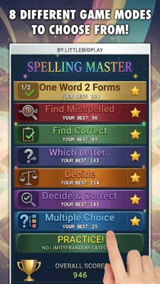So if you're ready to take your spelling skills to the next level, download Spelling Master now and aim for the TOP20 spot on the global leaderboard! With no interruptions, hidden fees, or pressure, you can improve your spelling at your own pace and have fun while doing it. Don't wait any longer - start playing and learning with Spelling Master today!