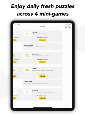 We are excited to announce that our game portfolio is expanding! Along with our popular game 7Letters, our hub now features three additional games for you to enjoy. These games include PANGRAM, CONNECTION, and 7WORDS. Each game offers a unique and challenging word puzzle experience that will keep you entertained for hours on end.