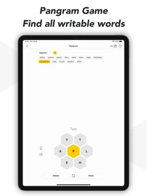 PANGRAM is a form of Anagram game that is similar to 7Letters. In this game, you are given 2 vowels and 5 consonants, along with a "Golden Letter" that is required to complete the puzzle. The Golden Letter can be either a vowel or a consonant, and you are allowed to use any letter multiple times. As you search for words, you will notice that they are listed in alphabetical order, making it easier to find patterns and come up with new words. With a database of over 100,000 words, the possibilities are endless. And if you manage to find a word that uses all 7 letters, you have achieved a PANGRAM!