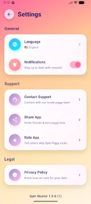 Spin Master is an application that helps users quickly find spin links, free spins, and coins without wasting time searching on the internet. It also provides daily updates on available spin links and free spins. In addition, users can also enjoy the relaxing games of piggy jump and piggy fly.