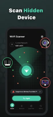 Spy Camera Detector Pro is an advanced application that utilizes magnetic sensors to detect the radiation intensity emitted by electronic devices or spy cameras in your vicinity. This professional android camera detector app is designed to protect your privacy by detecting any hidden spy devices, such as cameras or microphones, in any room. With its easy-to-use interface, you can quickly scan your surroundings and identify any potential threats. One of the main features of Spy Camera Detector Pro is its camera protection, which ensures the safety and security of your private spaces. The app also includes a hidden IR camera detector and blocker, allowing you to block any unauthorized access to your camera. This is especially useful for preventing spy cameras from recording pictures or videos in your hotel room. The app also offers a WiFi scanner, which allows you to scan your WiFi network and view detailed information about connected devices. This feature is particularly helpful in identifying any suspicious devices or hidden cameras that may be connected to your network. By keeping track of your WiFi network, you can ensure the safety and security of your private spaces. In addition to its advanced features, Spy Camera Detector Pro is also easy to use. With just a few taps, you can quickly detect any spy devices in your surroundings. The app also allows you to share it on social media, so you can spread the word and help others protect their privacy as well. Overall, Spy Camera Detector Pro is a simple, easy-to-use, and effective tool for detecting and protecting against spy devices. Its magnetic sensor and spy camera detector make it a reliable choice for anyone looking to secure their privacy. So don't hesitate to download this app and keep your private spaces safe and secure.