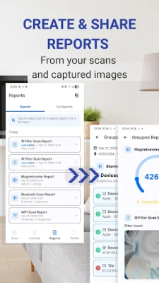 With Hidden Camera Finder, you can easily scan for hidden devices connected to your network, check for suspicious Bluetooth devices, detect infrared lights from hidden cameras, and unmask cameras disguised as everyday objects. The app also allows you to generate detailed reports from your scans and captured camera images.