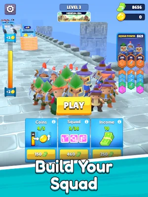 Squad Rush offers a variety of key features to enhance your gaming experience. With its fast-paced runner action and satisfying progression, you will be hooked from the start. The game also allows you to make strategic upgrade choices, giving you control over the evolution of your squad. You can recruit different unit types, including Archers, Knights, and Mages, to build a diverse and powerful squad. With your squad, you can overpower enemy armies and dominate every run.