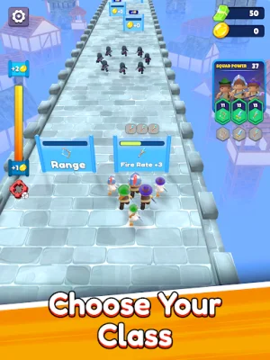 In this game, you must run through paths filled with obstacles and dangerous traps, making quick decisions to keep your squad alive. At every gate, you must choose the best boosts to help your squad progress. As you advance, you can grow your squad by making strategic upgrade choices such as Range, Fire Rate, and more. With each upgrade, your squad becomes more powerful and better equipped to break through enemy lines and emerge victorious.