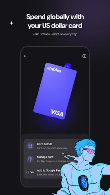 Stables also allows you to send USD worldwide with no hidden fees. This means you can easily support your family, friends, and businesses globally without worrying about expensive transfer fees. Additionally, Stables offers a Stables Visa card that can be used at over 150 million merchants and ATMs worldwide. You can also use popular payment methods such as Apple Pay and Google Pay, making it easy to spend your money wherever you go.