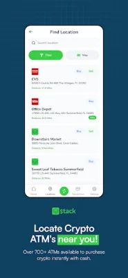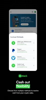 Sell Cryptocurrency with Stack for Cash Pickup at over 20,000 ATM kiosks! With Stack, you can easily sell your cryptocurrency for cash at any of our supported locations. Simply find a nearby Stack supported location and input the amount of cryptocurrency you wish to sell.