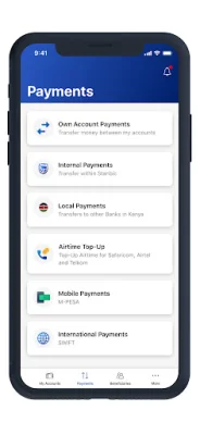 In addition to funds transfers, you can also use the app to make bill payments for various services such as credit cards, DStv, GoTV, ZUKU, JamboJet, Kenya Power prepaid tokens, Kenya Power postpaid bills, and Nairobi Water. This makes it convenient to pay your bills without having to visit multiple websites or make trips to different offices.
