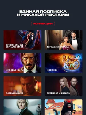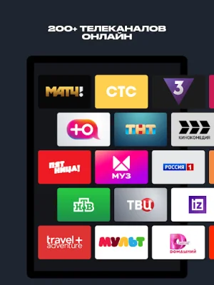 START is an online cinema subscription service that offers access to a vast catalog of movies, TV shows, and cartoons. It also includes exclusive premieres of original START productions. With START, you can watch your favorite films on any device, anywhere in the world. The subscription also includes access to over 200 TV channels, including popular ones like STS, "Friday!", TNT, and "Match TV", which can be streamed online. Additionally, START provides behind-the-scenes content and allows for downloading and offline viewing of movies, TV episodes, and cartoons.