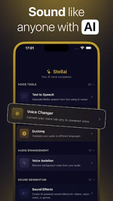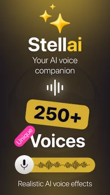 Stellai is an innovative mobile application that allows users to transform their voices into over 250 different celebrity and professional voices with just one tap. Whether you're looking to create content, play pranks on friends, or produce voiceovers, Stellai offers studio-quality transformations powered by AI and Eleven Labs technology. It is considered the best voice changer app for text to speech, AI dubbing, and more, making it a top choice for users looking for a high-quality experience. One of the standout features of Stellai is its Celebrity Voice Changer, which allows users to sound like their favorite celebrities, characters, and personalities. With a library of hundreds of realistic options powered by Eleven Labs, users can record or upload audio and instantly hear their transformation. The app also adds new content every week, providing users with more options than other similar apps like Voicemod. Stellai also offers an AI Voice Changer, which goes beyond basic voice changing capabilities. With real-time effects, the ability to mix styles, and create unique presets, Stellai is a full AI studio experience. Powered by Eleven Labs, users can expect the highest quality voice changing experience on their mobile devices. This sets it apart from other apps like Voicemod, which may not offer the same level of quality. Another useful feature of Stellai is its Text to Speech function, which allows users to type anything and hear it spoken in realistic AI tones. With hundreds of options powered by Eleven Labs, this feature is perfect for narration, audiobooks, and accessibility. It is considered the most natural-sounding text to speech app available, providing users with Eleven Labs quality on their phones. Stellai also offers a Dubbing AI feature, which allows users to translate their audio into a new language while preserving the original quality. With support for 29 languages and Eleven Labs precision, this feature is perfect for preserving tone and emotion across languages. Unlike Voicemod, Stellai offers a full dubbing AI experience with Eleven Labs technology. In addition to these features, Stellai also offers a Noise Removal function, which allows users to remove background noise and extract clean audio from any recording. This is perfect for podcasts, music production, and calls. The app also has a Sound Effects Generator, which uses AI to create custom effects for videos, podcasts, or games. Users can generate unique audio instantly and combine it with the voice changer for a complete production experience. Stellai stands out from other similar apps for several reasons. It offers over 250 options powered by Eleven Labs technology, a real-time voice changer with instant processing, professional text to speech and dubbing AI, and a better mobile experience than Voicemod. It also works offline, meaning users do not need an internet connection to use it. With support for 29 languages and new content added regularly, Stellai is considered the #1 voice changer and dubbing AI app powered by Eleven Labs. It is a must-have for anyone looking for a high-quality and versatile voice changing experience.