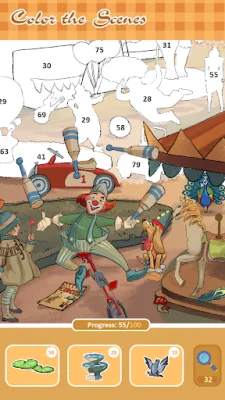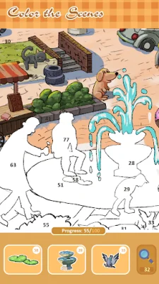 The main focus of this app is to provide a relaxing and creative experience through sticker coloring. You can organize your creations in a cozy coloring book and unlock new pages in your sticker album as you progress through the game. Each completed picture adds a new stamp to your album, marking your creative journey. With a variety of scenes to choose from, you can explore a warm and playful world of stickers and collect all the stickers to fill your album.