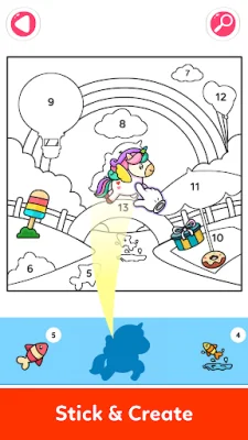 The app offers a variety of activities for kids to enjoy, including sticker by number, paint by stickers, and fun puzzles that bring pictures to life. By following the numbers and placing the pieces, beautiful artwork appears right before their eyes. With 30 different puzzles to choose from, each with its own unique theme, there's something for every child to enjoy.