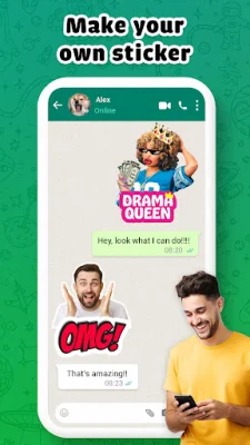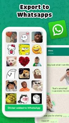 Creating a sticker pack for WhatsApp is a simple process with this app. All you need to do is choose an image, edit it by cutting, adding stickers and text, and then export and save it into an existing sticker pack or create a new one. You can then easily add the sticker pack to your WhatsApp and share it with your friends, maintaining a cheerful and amusing atmosphere in your chats.