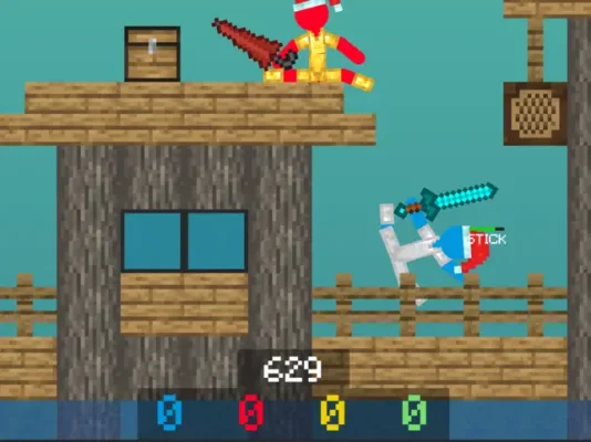 The main objective of the game is to defeat other stickman opponents and become the leader in the room. This can be achieved by using a variety of weapons and items that can be purchased with golden apples. These golden apples can be collected throughout the game, adding an element of strategy and resource management. The game also boasts impressive graphics and sounds, creating an immersive gaming experience. The animation is realistic and the ragdoll physics add a touch of realism to the gameplay.