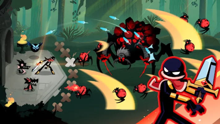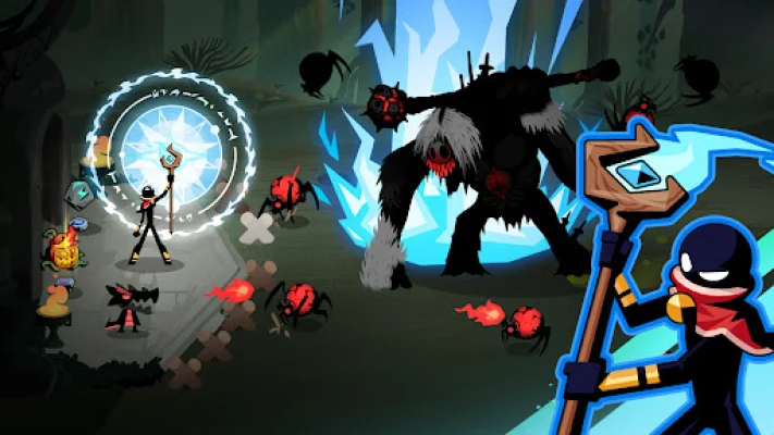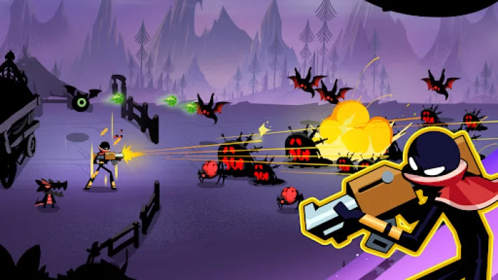 Equip your stickman with the most powerful weapons, armor, and accessories. Summon pets and sidekicks to aid you in battle and turn your stickman into a legendary combat machine. Prepare for intense survival and defense challenges as you face dangerous enemies such as spiders, monsters, giants, golems, and orcs in increasingly difficult missions. Massive bosses will also test your skills and strategy.
