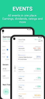 With a focus on simplicity and accessibility, Stock Events is designed for both newcomers and experts in the world of investing. It offers a wealth of information, including analyst ratings, statistics, dividends, earnings, news, and ETF distribution. For those looking for even more features, Stock Events PRO is available, offering a larger watchlist, news, upcoming IPOs, and a stock screener.