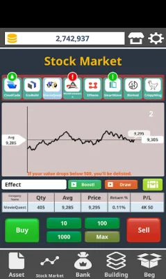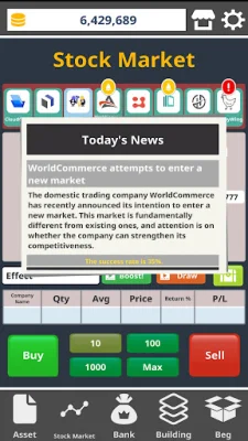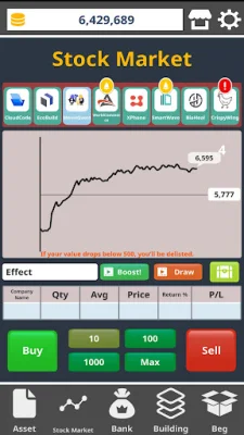 Our game is easy to play, but always exciting. With a simple start, you'll be immersed in the unpredictable world of trading, where endless surprises await. Will you make the right moves and ride the wave to the top, or will you crash and burn? The choice is yours, and your stock market adventure starts now.