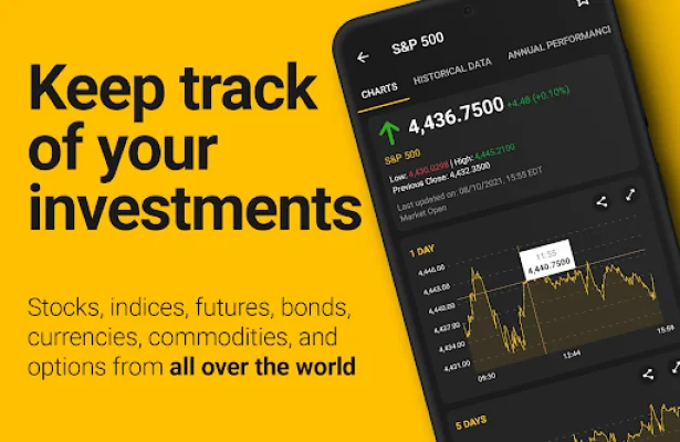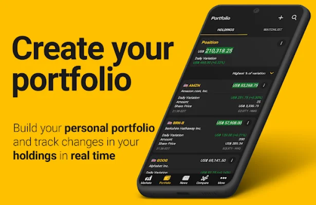 InvestApp is a user-friendly application that allows you to create a personalized portfolio by adding your favorite stocks and their holdings. You can also create a customized watchlist to keep track of any financial instruments you are interested in. This app is suitable for both experienced investors and beginners, providing useful functions and analysis to help you make informed decisions when investing your money. With over 100,000 downloads, InvestApp is a popular choice for investors. It is a simple and efficient application, taking up less than 10 MB of space on your device. This means you can access all the features and information without taking up too much storage. The app provides live quotes, charts, statistics, and historical financials for a wide range of stocks, indices, futures, commodities, currencies, bonds, and options from stock exchanges around the world. You can also track real-time prices for global stocks, indices, futures, commodities, currencies, bonds, and options. InvestApp allows you to create a personalized watchlist by selecting your favorite stocks and adding them with a simple tap on the star icon. You can also track the performance of your personal portfolio in real-time by adding stocks and their holdings to your portfolio. In addition to stocks, the app also provides information on commodities such as gold, silver, copper, oil, natural gas, corn, wheat, and cattle. You can also follow major global indices from the United States, Americas, Europe, Asia, Pacific, Africa, and the Middle East. InvestApp also offers company statistics, including valuation measures, market cap, P/E, revenue, EBITDA, profitability, debt, cash flow, and more. You can easily compare and evaluate stocks using interactive charts. Stay updated with the latest news and analysis on global markets, business, finances, companies, stocks, currencies, commodities, and the economy with InvestApp. You can also use the currency converter with charts and historical prices to track currencies from around the world. With daily notifications, you won't miss any important information about global markets. InvestApp is a comprehensive and convenient tool for investors, providing all the necessary information and analysis in one place. So why wait? Download InvestApp for free and start making informed investment decisions today.